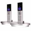 This twin pack contains two stylish cylindrical phones, both with hands-free facility,